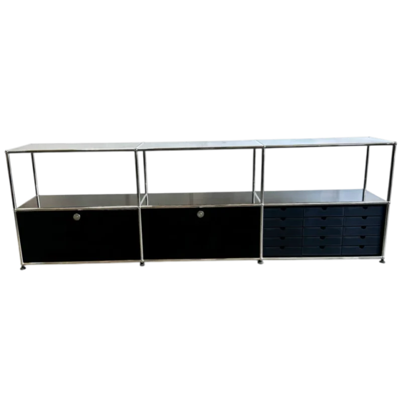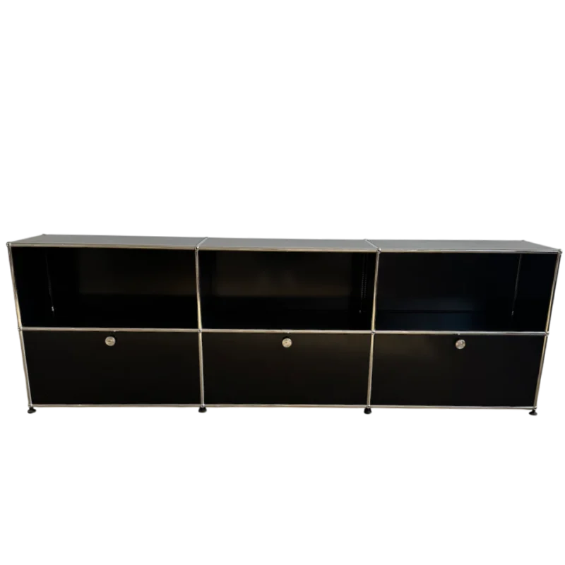 Authentic 1960s USM Haller 3×2 Media Console – Fully Enclosed Graphite Black Cabinet