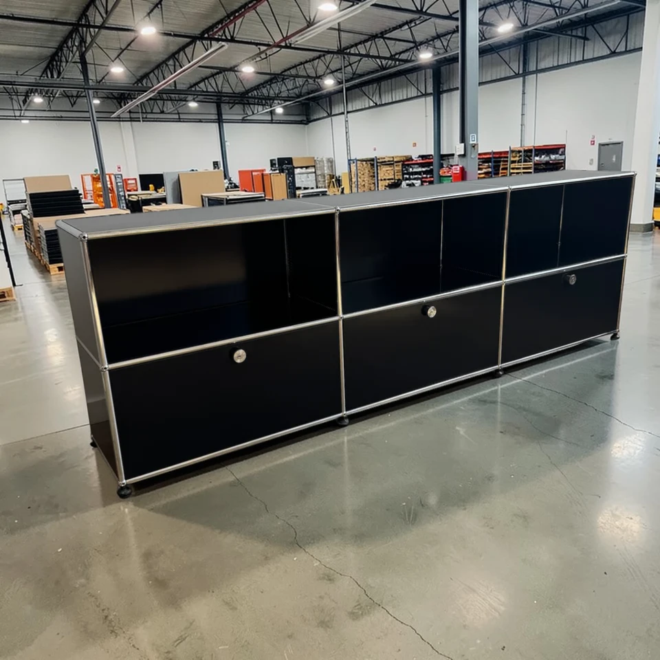Authentic 1960s USM Haller 3×2 Media Console – Fully Enclosed Graphite Black Cabinet