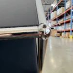 The deep, neutral Graphite Black powder-coated panels offer a commanding and versatile presence, perfectly complementing the structural brilliance of its polished chrome-plated steel frame. Designed for durability that spans generations, this console is not just furniture but a functional heirloom, engineered to organize and elevate any space.