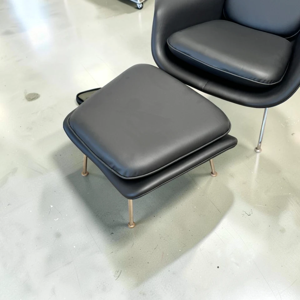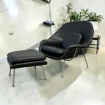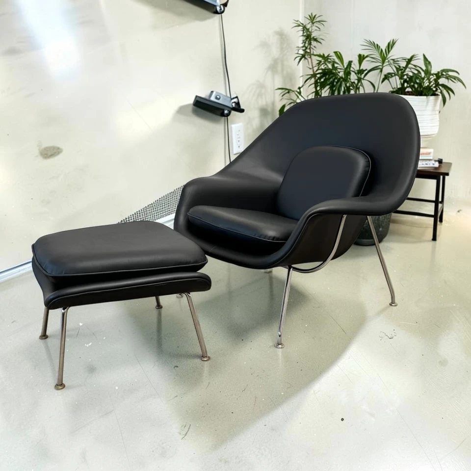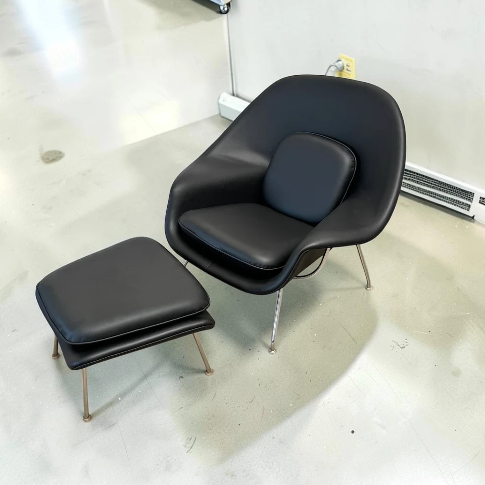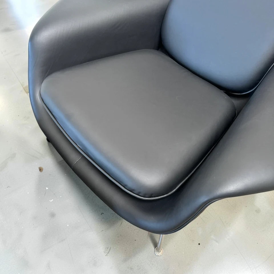 Eero Saarinen Womb Chair & Ottoman – Authentic Knoll – Black Leather