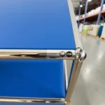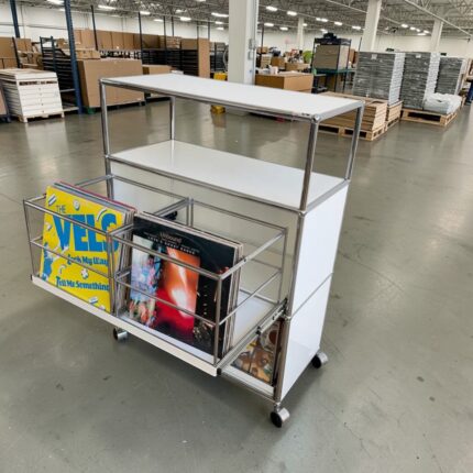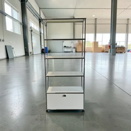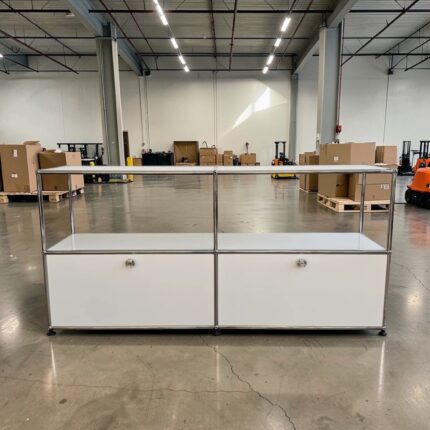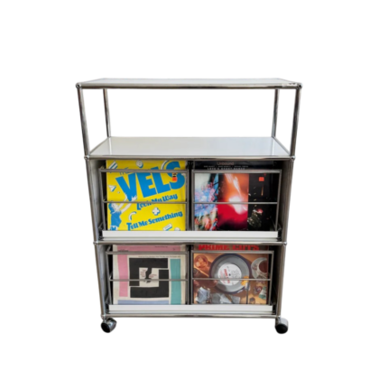 Designed as part of the celebrated USM Haller modular furniture system, this low console reflects the timeless appeal that has made USM a favorite among architects, collectors, and modern design enthusiasts. Its minimalist profile, chrome-plated tubular frame, and precision-engineered panels create a look that is both visually light and structurally substantial, making it an ideal choice for interiors that value both form and function.