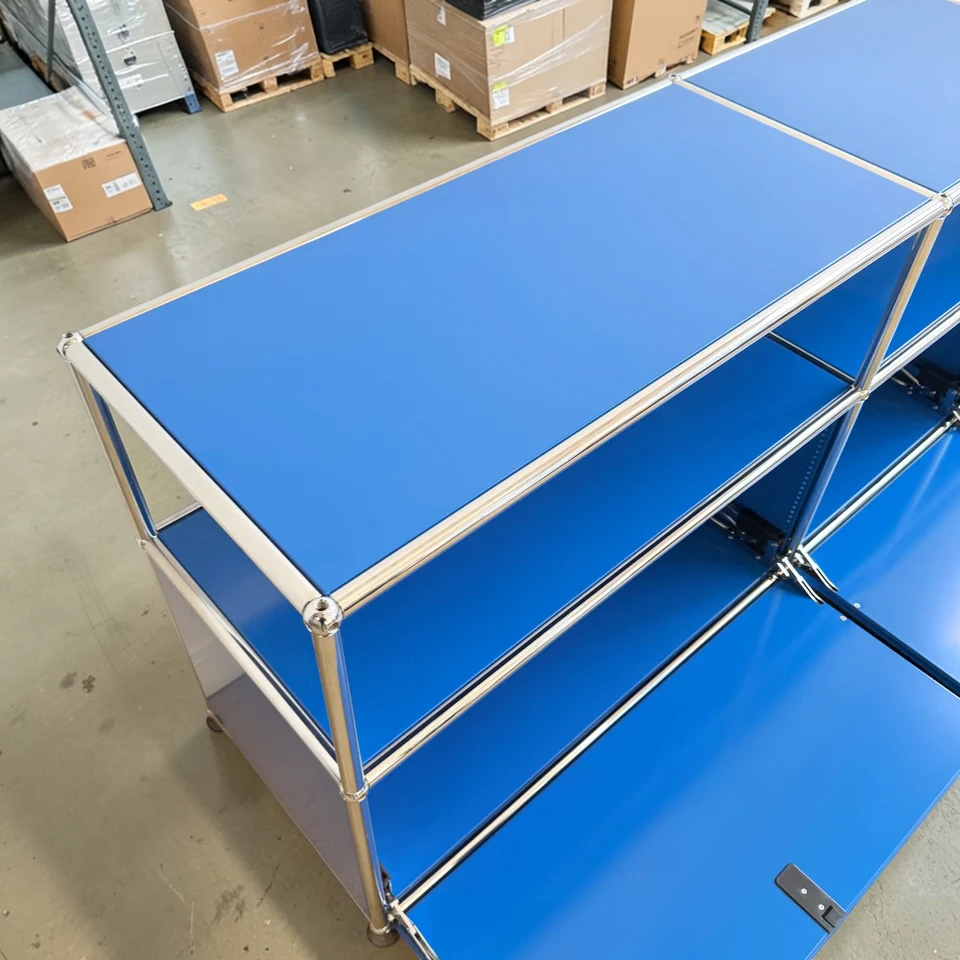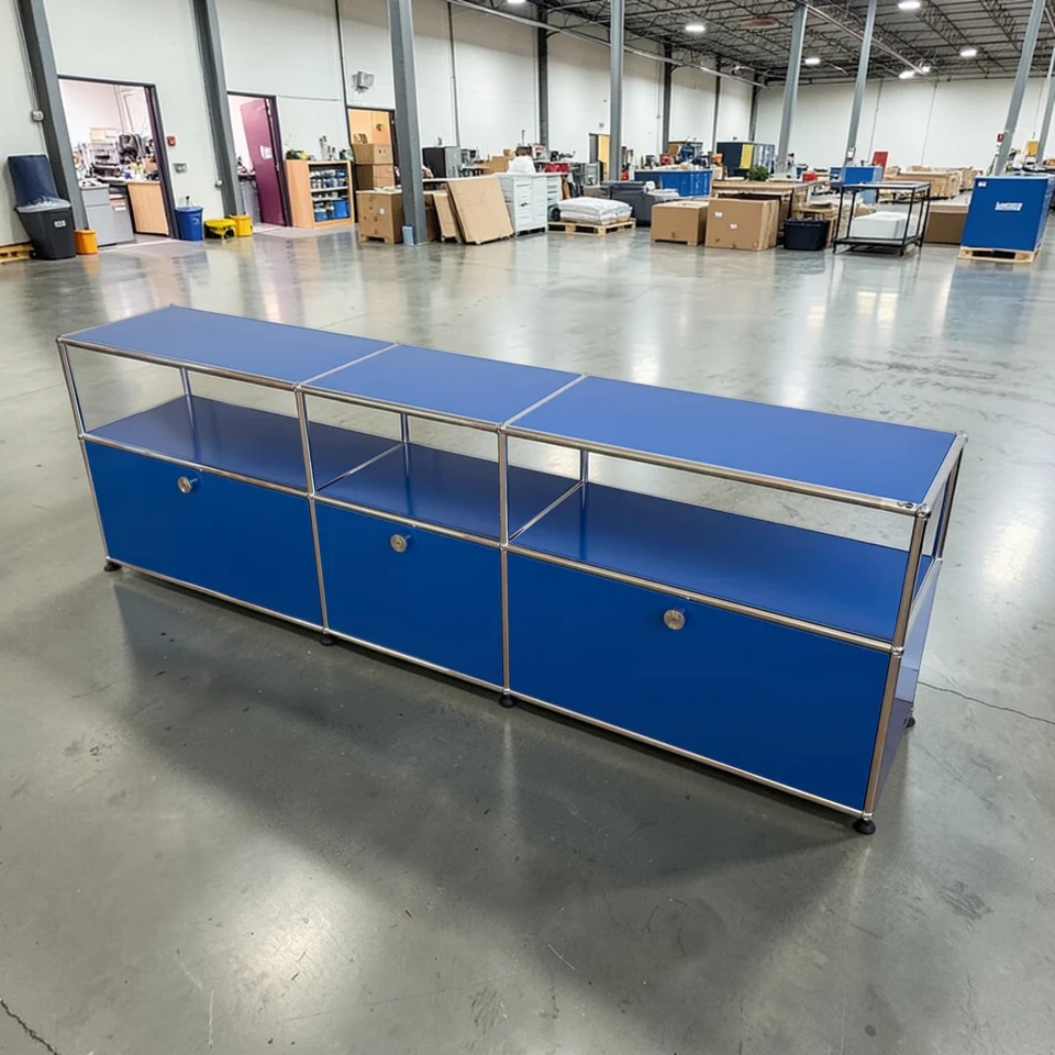 Elegant, practical, and instantly recognizable, this USM Haller 3×2 low media console in Gentian Blue is a collector-worthy modern storage piece that delivers iconic Swiss design, premium craftsmanship, and flexible functionality in one timeless form.