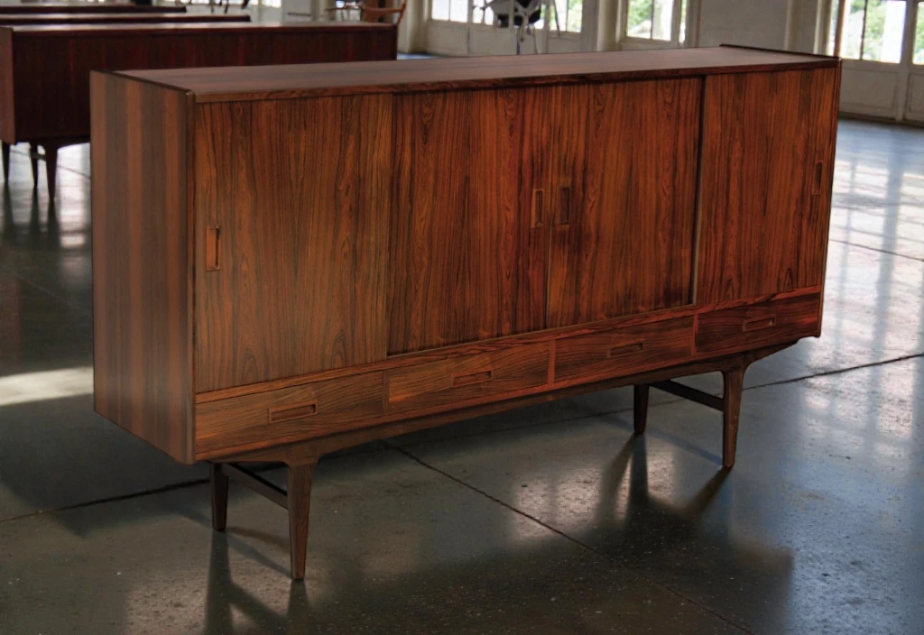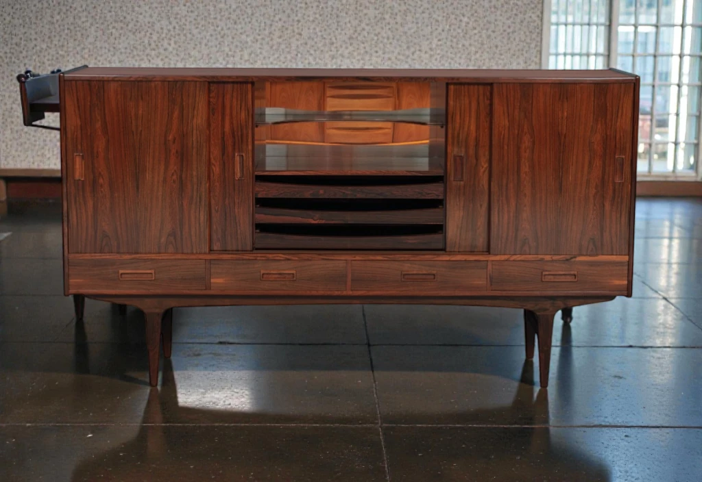P. Westergaard Møbelfabrik was a Danish furniture manufacturer known for producing high-quality rosewood and teak case pieces in collaboration with leading designers including Børge Seindal. The company’s pieces from the 1960s are valued by collectors for their exceptional construction, innovative features, and the spectacularly figured wood they employed.