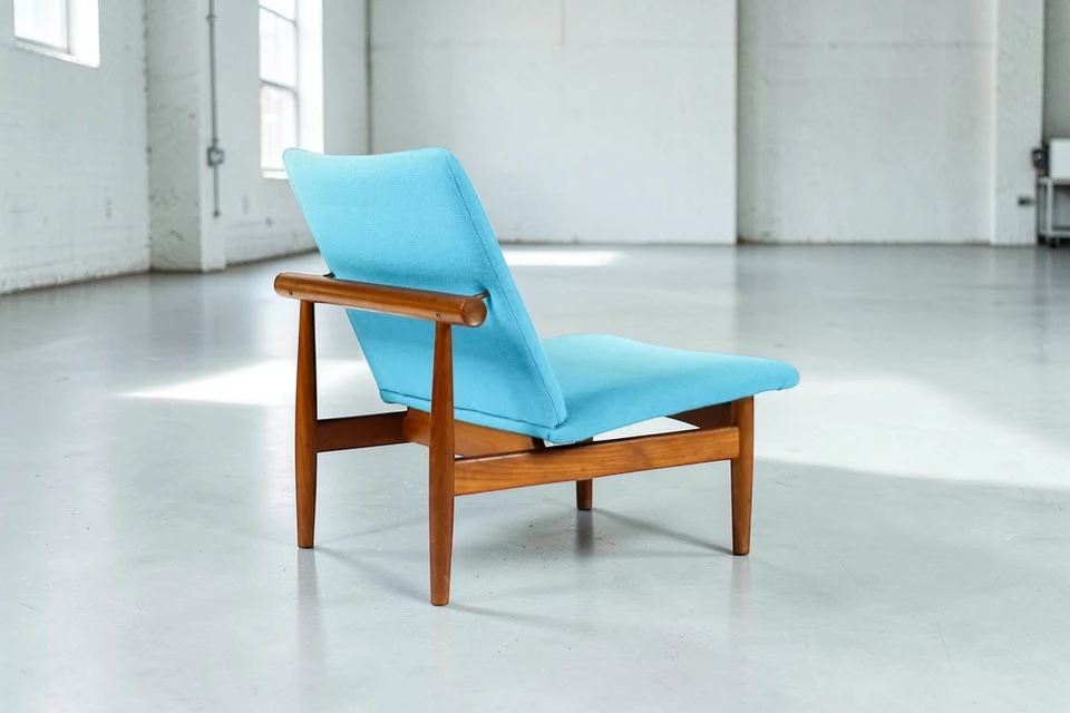 Authentic pair of Finn Juhl ‘Japan’ Teak Lounge Chairs – Mid-Century Danish Modern design, restored with custom upholstery.