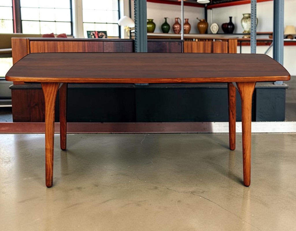 Henning Kjærnulf is celebrated for his organic, sculptural approach to Danish modern design. His work stands out for its tapered profiles, flowing lines, and masterful use of fine woods like Brazilian rosewood. This dining table exemplifies his design philosophy – furniture that is both functional and sculptural.