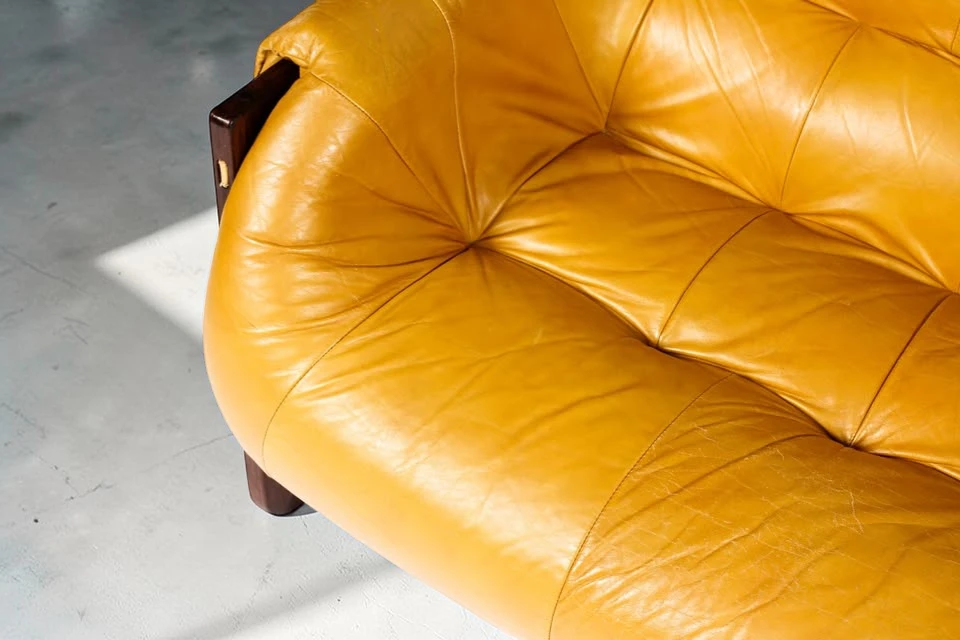 Discover a Rare Mid-Century Brazilian Modernist Sofa by Percival Lafer – Model MP-97 in Rosewood and Butterscotch Leather