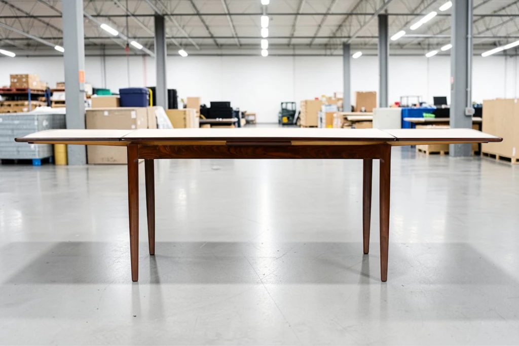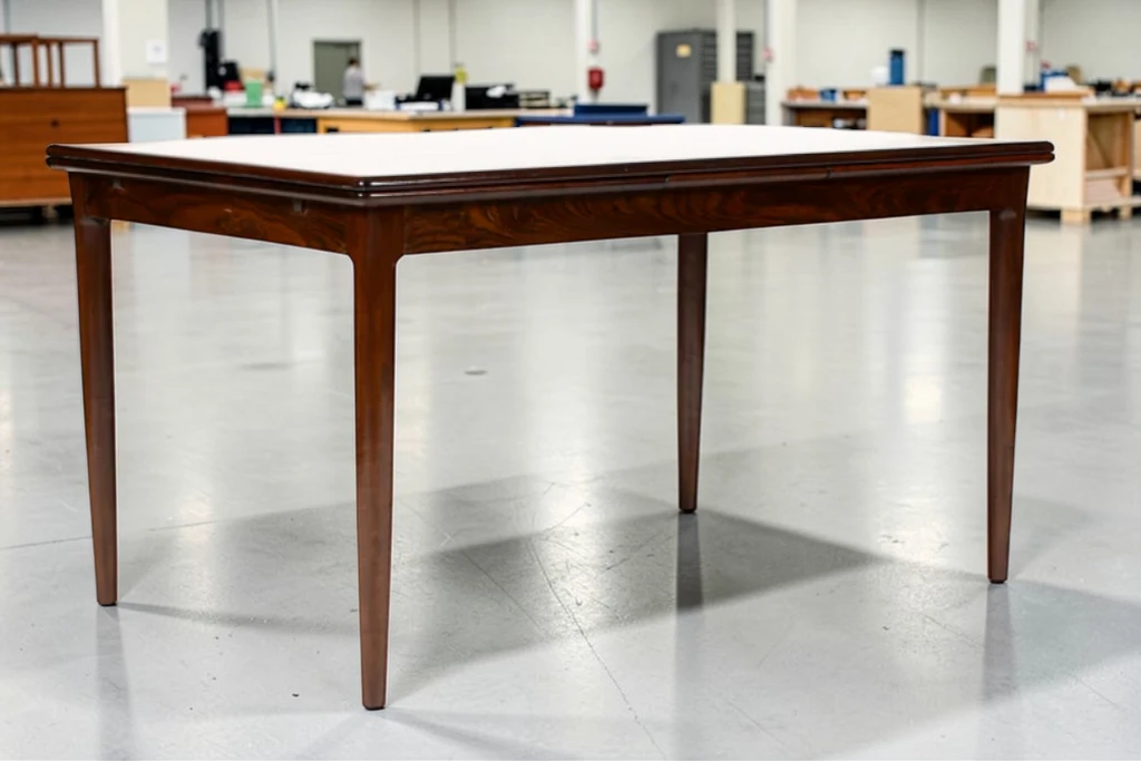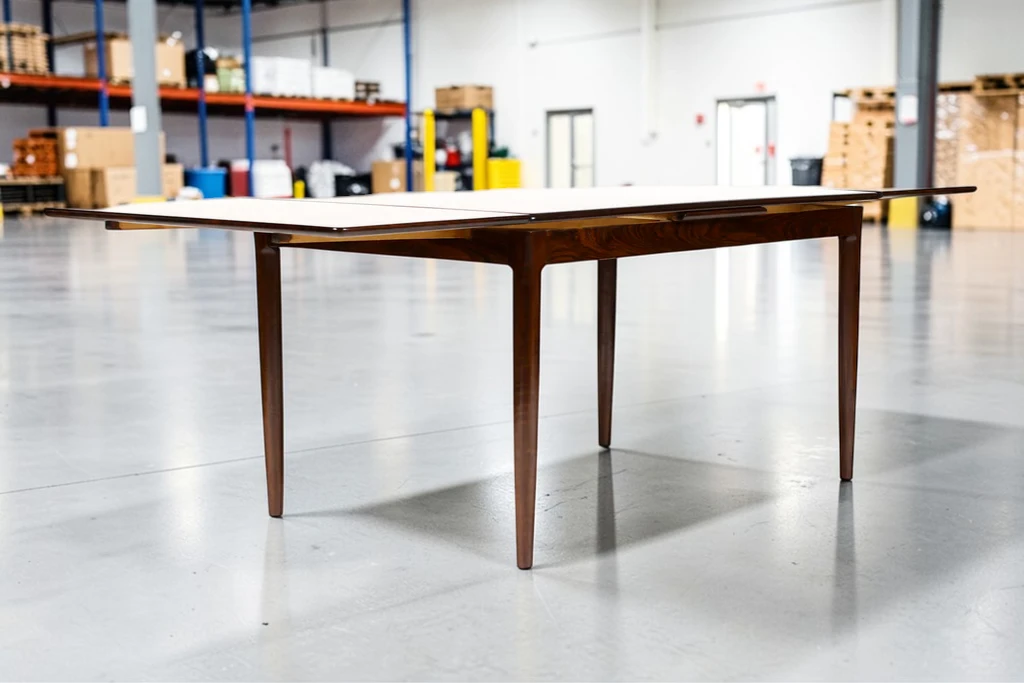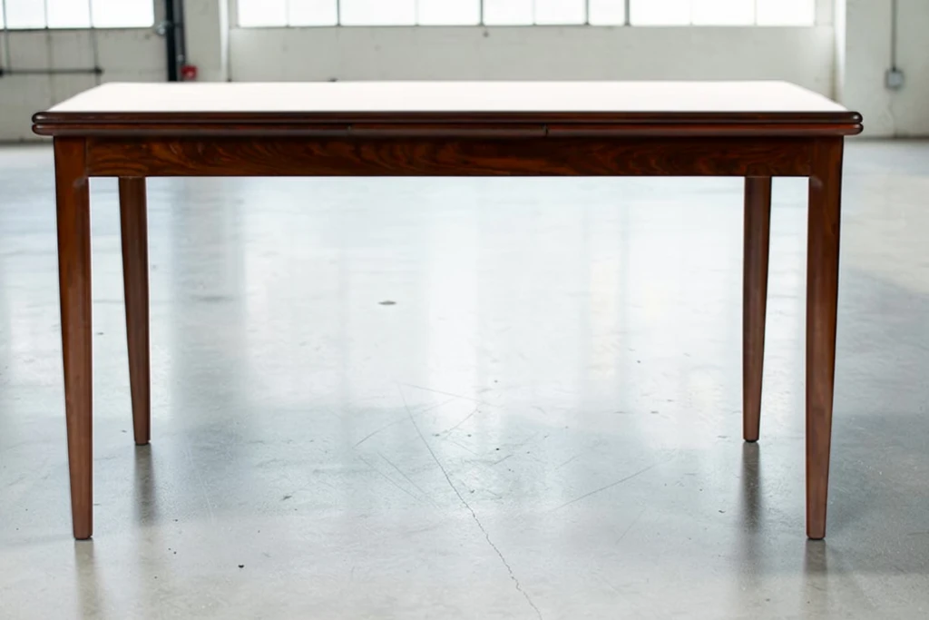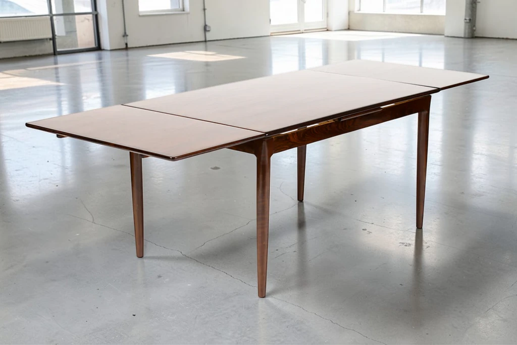 Whether you’re a collector of mid-century modern design, a fan of Danish furniture makers, or simply seeking a striking and versatile dining table, this Axel Christiansen draw-leaf table offers the perfect combination of beauty and practicality.