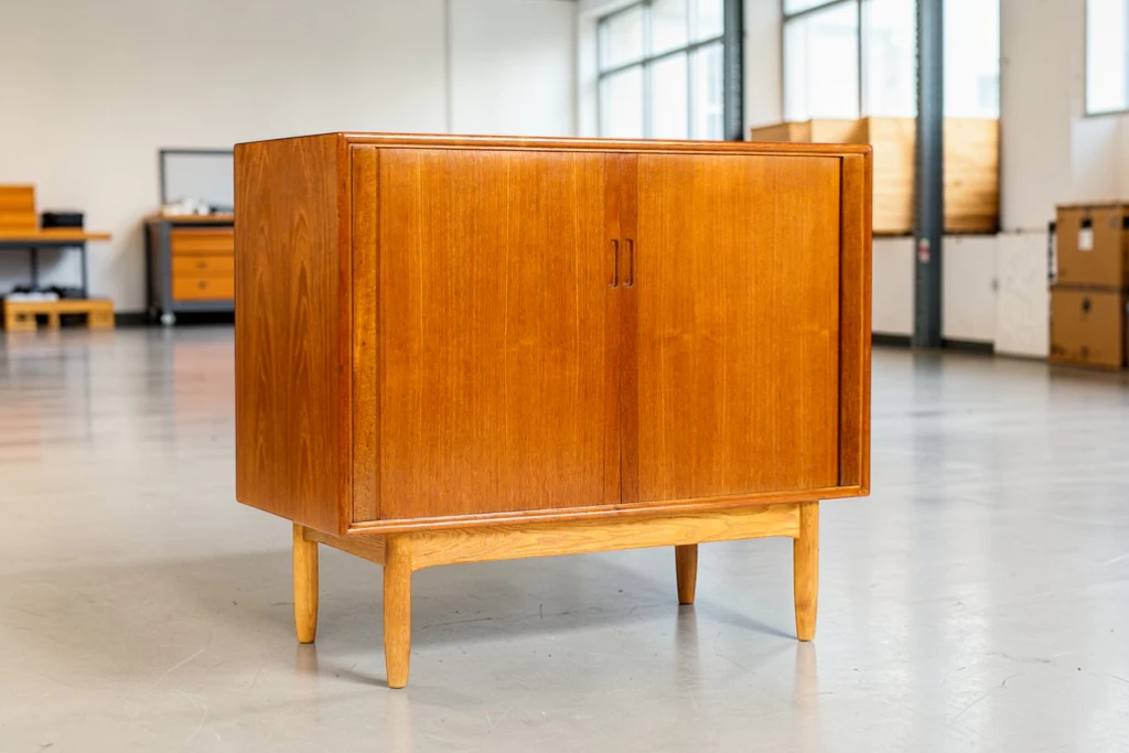 Mid-Century Danish Modern Teak Credenza by Hans C. Andersen – 1960s Compact Sideboard with Tambour Doors