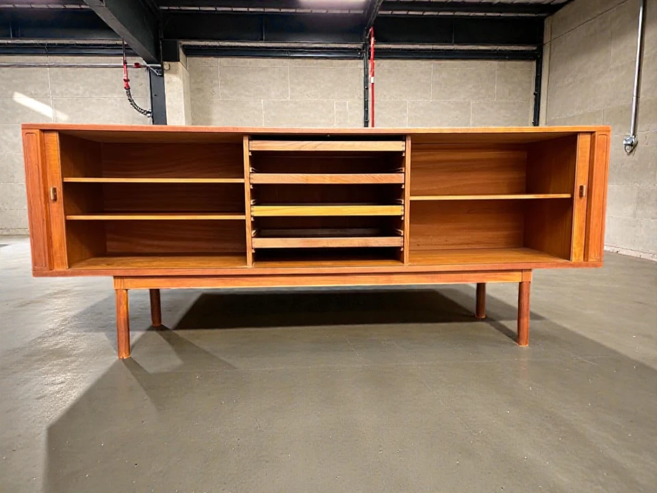 I couldn’t be happier with my purchase of this vintage Peter Lovig teak credenza. The craftsmanship is exquisite — from the rich, warm tone of the teak wood to the smooth tambour doors that glide effortlessly. It arrived exactly as described, professionally packed and delivered with care.