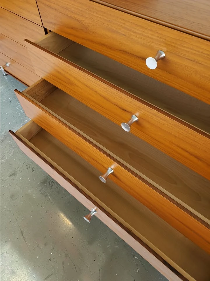 - Storage: Eight drawers with smooth aluminum pulls for easy access and a sleek finish
