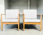 Elevate your interior with this stunning pair of 1960s Danish modern lounge chairs, attributed to the legendary Folke Ohlsson for DUX of Sweden. These rare and beautifully crafted vintage beechwood lounge chairs are a true celebration of Scandinavian modernism, combining sculptural elegance, ergonomic comfort, and expert craftsmanship.