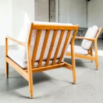 Designed for modern living, these Danish lounge chairs reflect the innovative spirit of DUX during the mid-century era. Built for disassembly without tools, the frames are engineered to be flat-packed—a rare feature in vintage furniture, adding a layer of convenience without compromising design integrity.