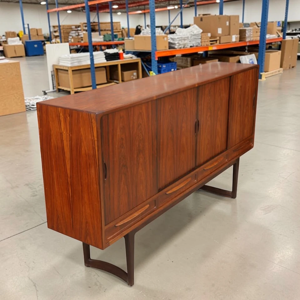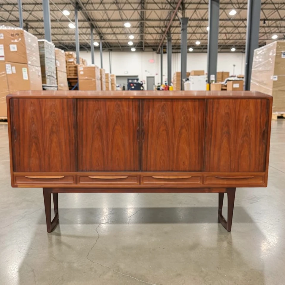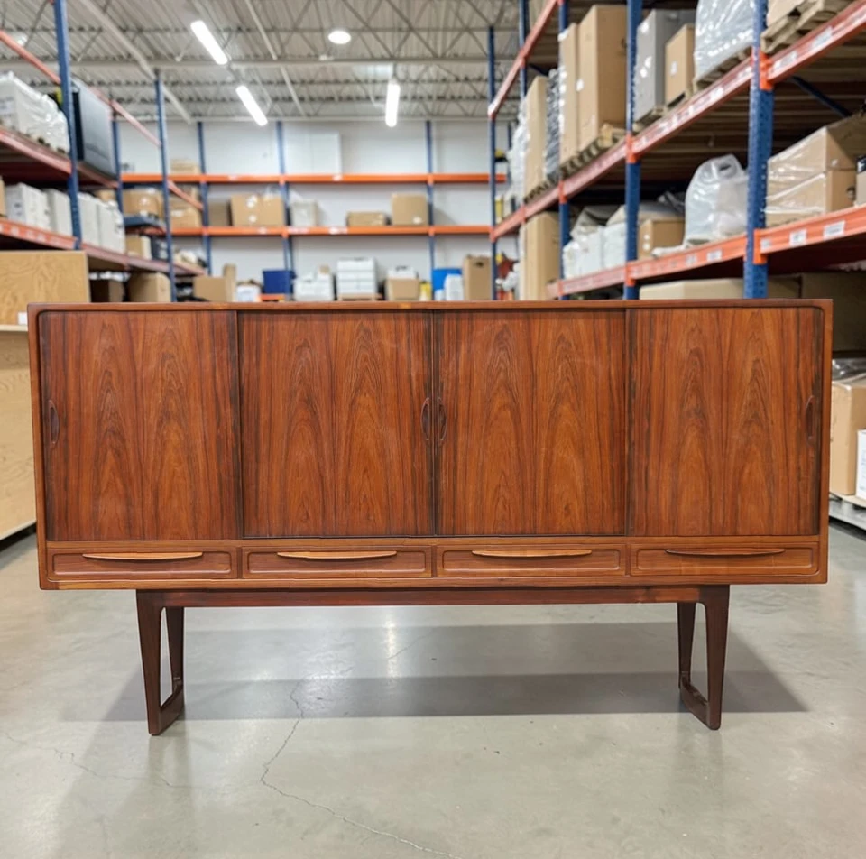 Discover this rare Mid-Century Modern Brazilian Rosewood credenza – a Danish Modern sideboard with elegant lines, ample storage, and timeless Scandinavian craftsmanship.