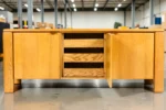 Elevate your interior with this exceptional Mid-Century Modern Danish chunky white oak credenza sideboard, a rare late-1970s production by Glenn of California. This substantial and uncommon piece showcases the clean, architectural lines and natural material palette characteristic of California modernism. Though the designer is unconfirmed, the design bears strong resemblance to works by John Kapel or Robert Baron, two of Glenn of California’s most celebrated contributors.
