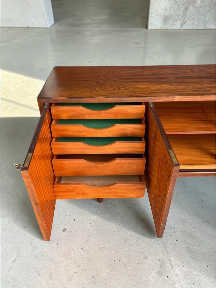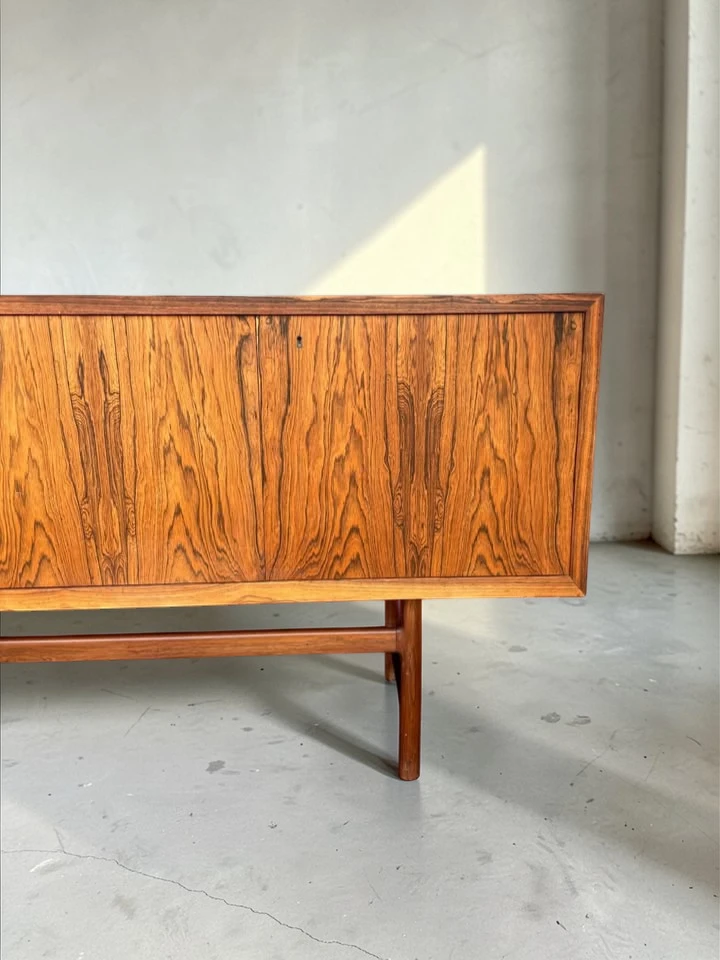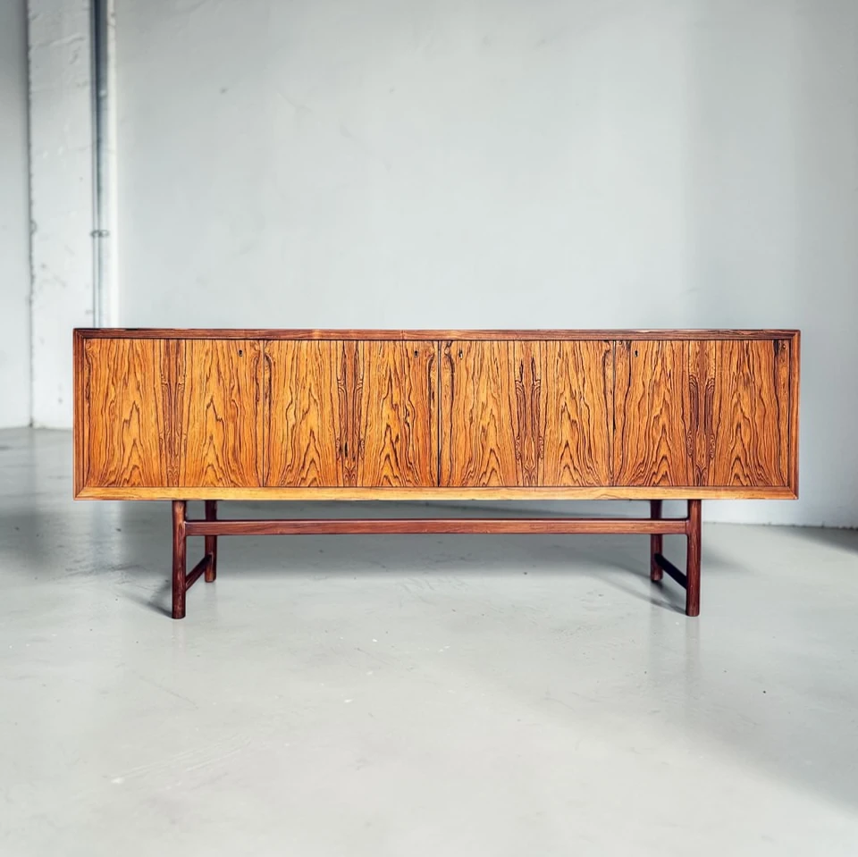 This Rosewood Darby Credenza by Torbjørn Afdal is truly a masterpiece. The rosewood grain is rich, deep, and beautifully preserved — a stunning example of classic Norwegian craftsmanship. The sleek design and minimalist form blend seamlessly into our modern living space, adding a layer of sophistication that’s hard to match.