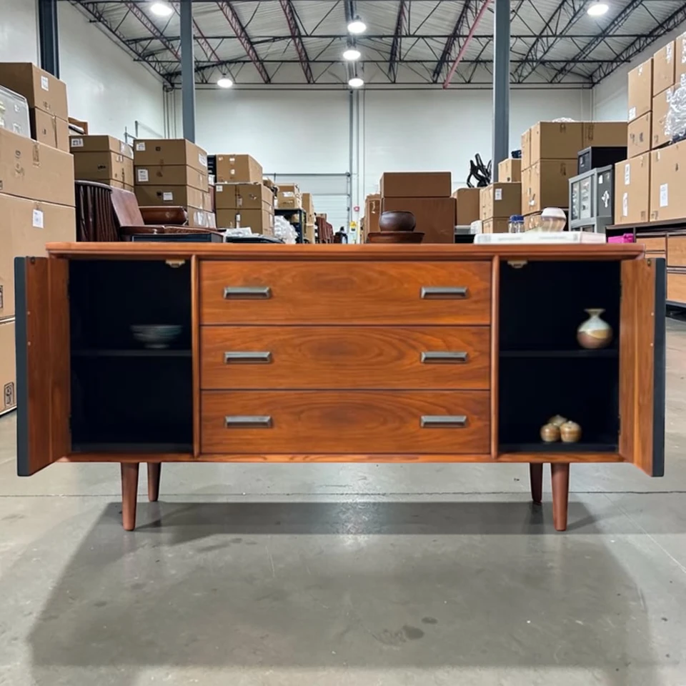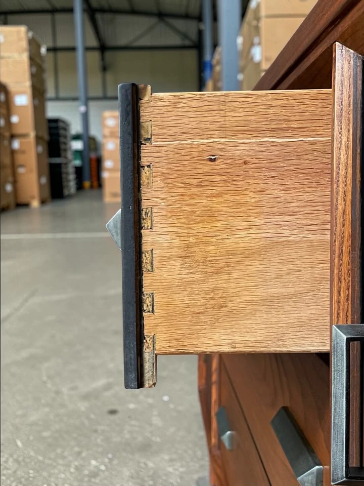 • Drawers: (4) Full-width dovetailed drawers. Glide smoothly on original wooden runners. Perfect for flatware, linens, or remote controls.