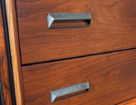 • Accent Wood: Premium Brazilian Rosewood veneer, applied to drawer fronts and cabinet doors. Known for its dark chocolate streaks and linear grain, rosewood adds significant collector value to this piece.
