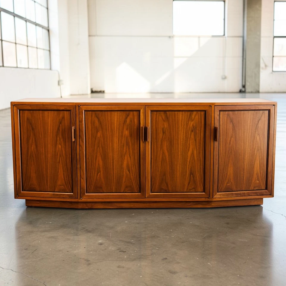 Rare 1960s Mid Century Modern Walnut Credenza by Calvin – Vintage Designer Storage