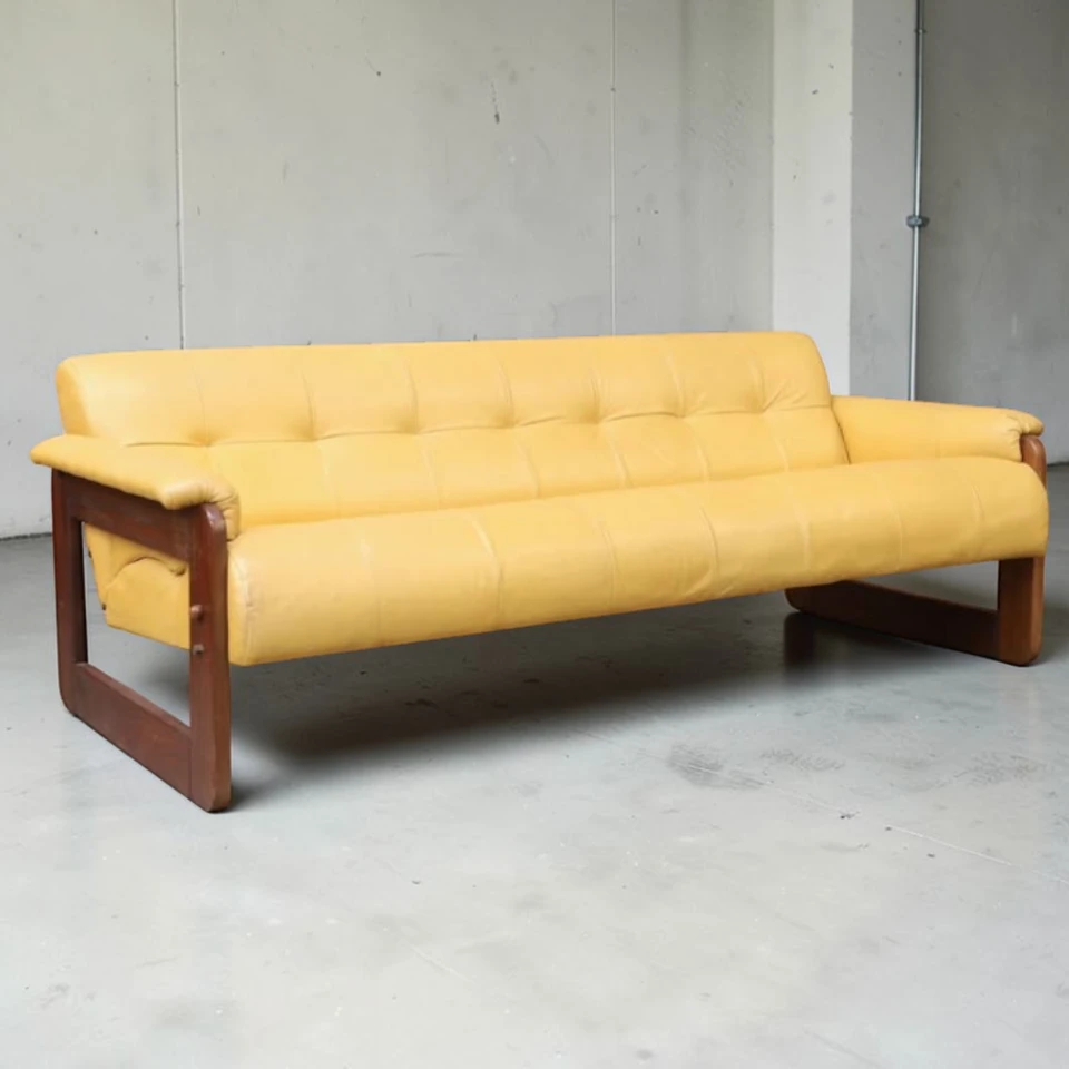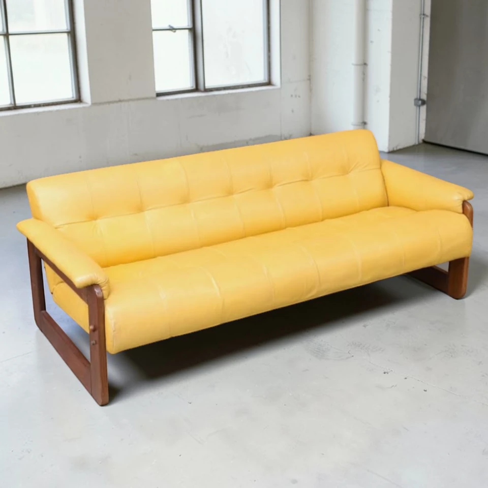 Discover a rare and iconic piece of Brazilian modernist design with this Percival Lafer MP-185 Yellow Leather Sofa from the 1970s. Designed by renowned Brazilian architect and designer Percival Lafer, this striking vintage sofa embodies the best of Mid-Century Modern aesthetics — bold color, sculptural form, and supreme comfort.