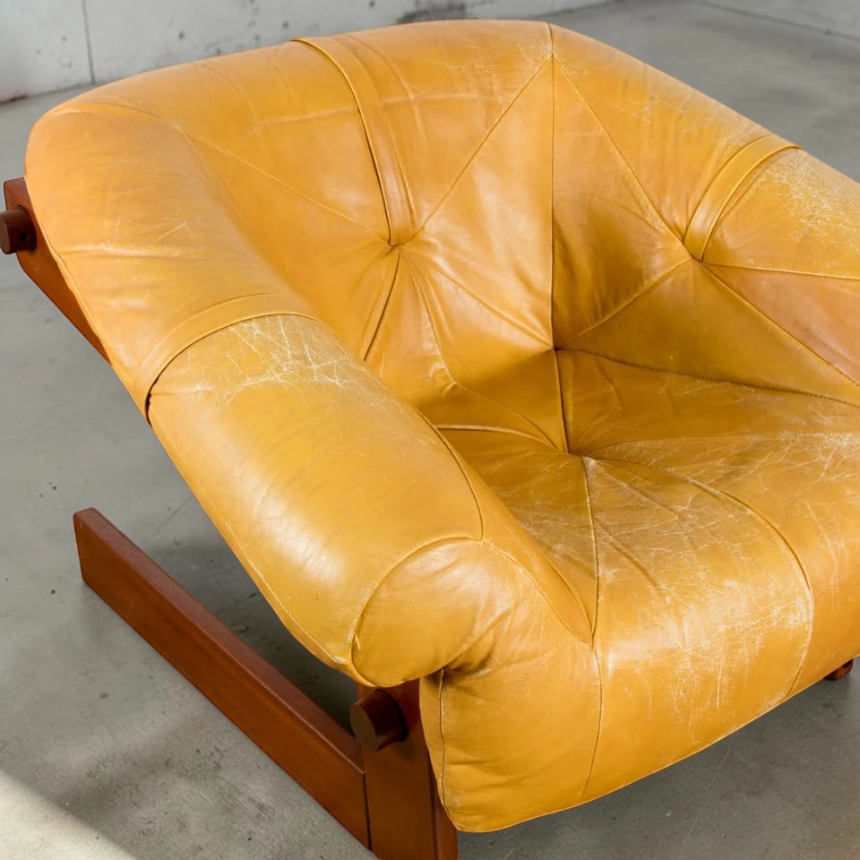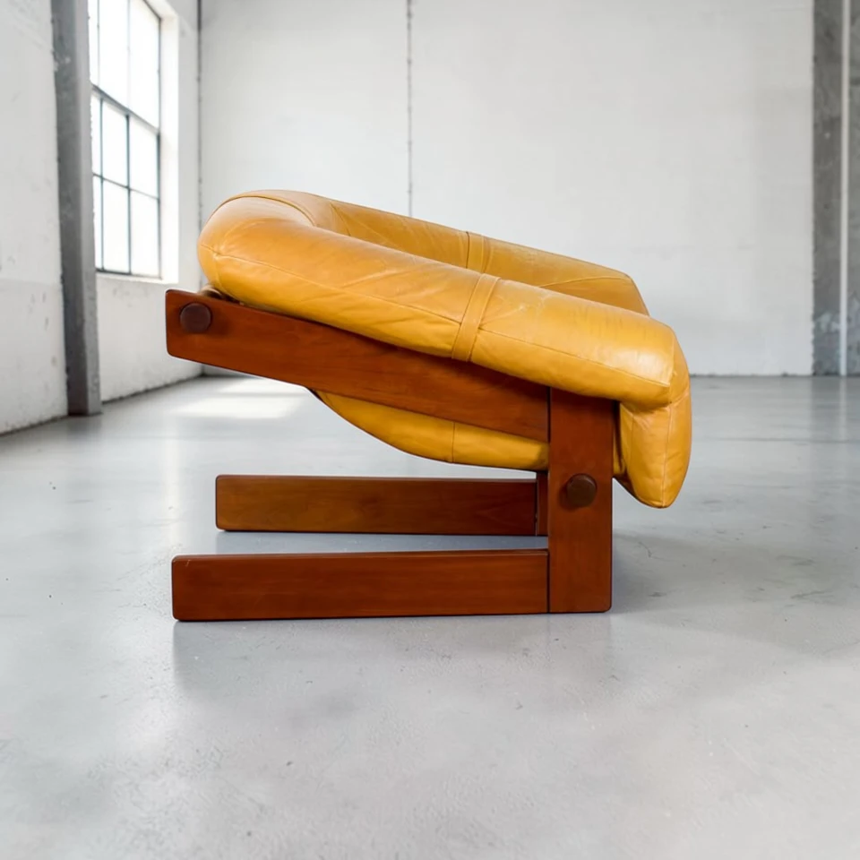 Discover a rare and iconic piece of mid-century Brazilian design with this Vintage 1970s Percival Lafer MP-131 Yellow Leather Lounge Chair, crafted in Brazil and showcasing the distinctive style of celebrated designer Percival Lafer. This uncommon MP-131 model exemplifies the fusion of comfort, sculptural form, and innovative craftsmanship that defined Lafer’s work.