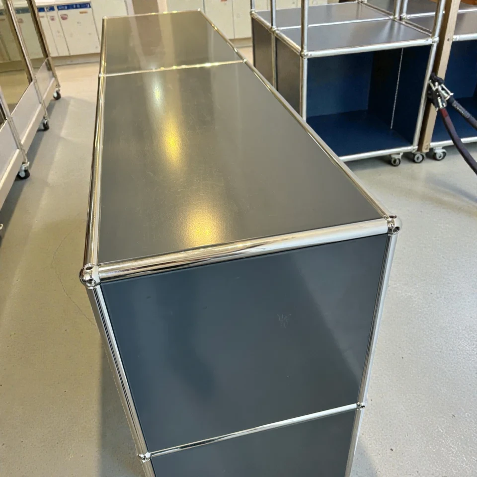Powder-coated steel panels — custom-made to USM’s exacting specifications, offering a durable, scratch-resistant finish that maintains its appearance for decades