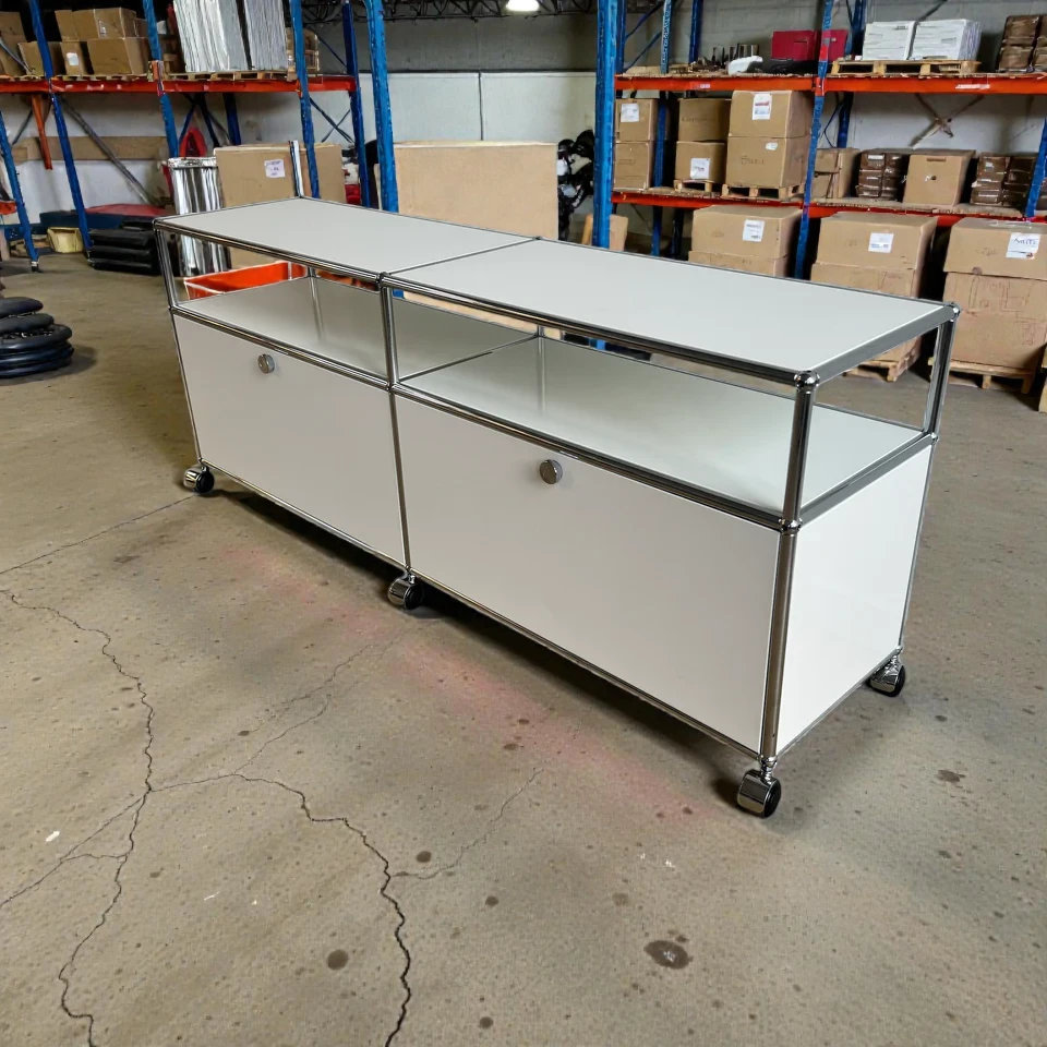 Unlike standard USM Haller consoles, this piece is equipped with 6 casters on the bottom, allowing you to move it effortlessly around your space. Whether repositioning for cleaning, reconfiguring your room layout, or using the console in multiple locations, the casters add exceptional versatility.