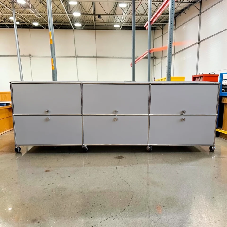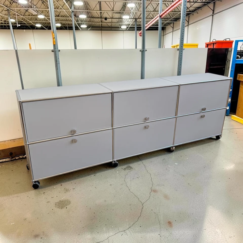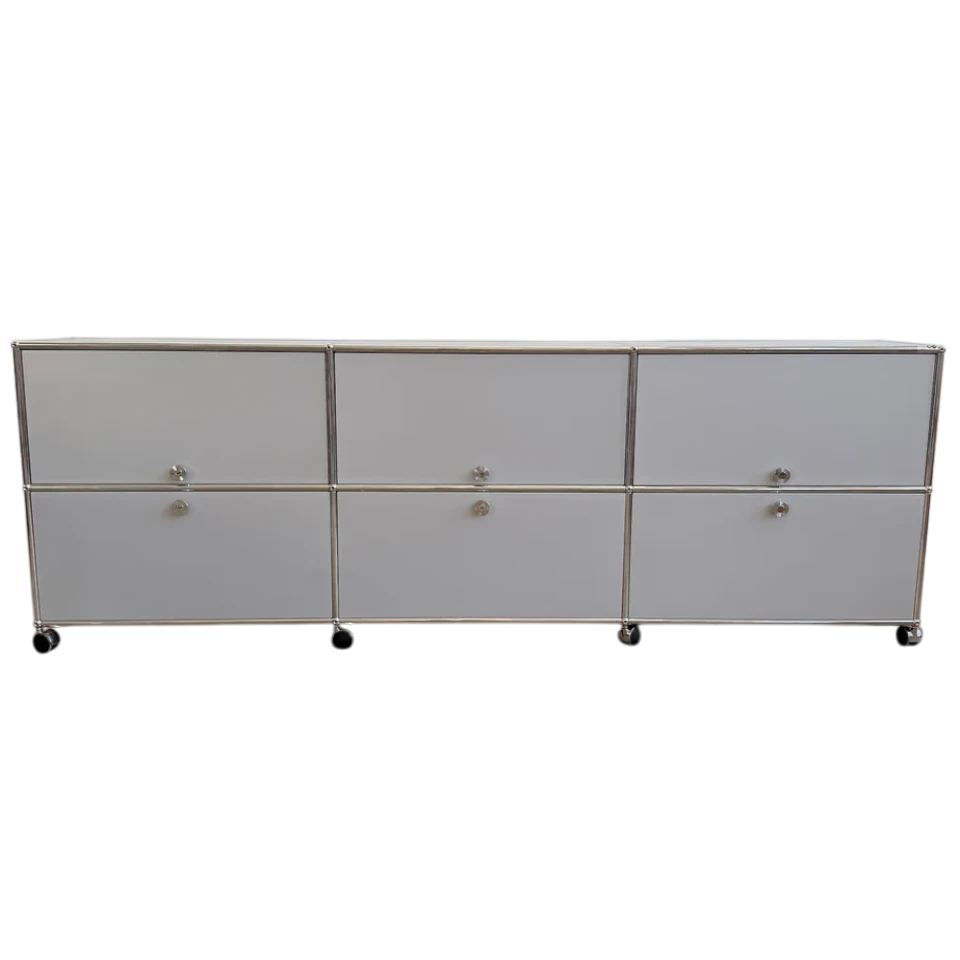 USM Haller XL 3×2 Silver Storage – 6 Doors + 3 Pullout Trays + Casters