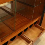 Constructed in richly grained solid teak, this dry bar features a clean-lined exterior that opens to reveal a highly functional interior:
