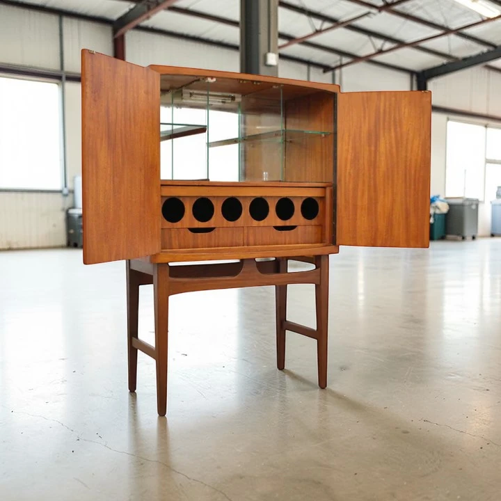 Discover a Rare Vintage 1950s Mid-Century Norwegian Teak Bar Cabinet by Torbjørn Afdal – “Baccus” for Bruksbo Tegnekontor