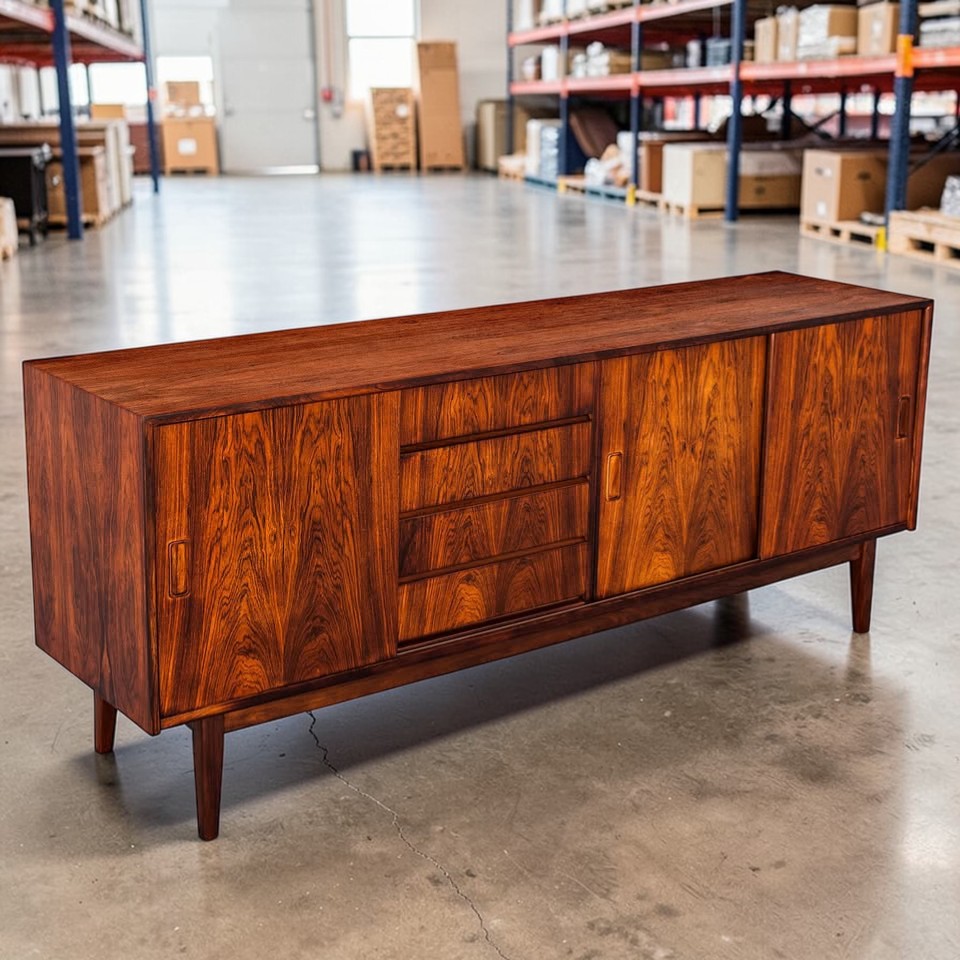 Vintage Mid Century Bernhard Pedersen Danish Modern Rosewood Credenza – 1960s Danish Masterpiece